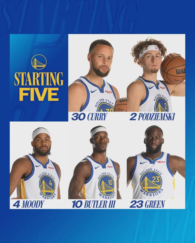 湖人首发:文森特、拉拉维亚、范德比尔特、八村塁、艾顿。勇士首发:库里、波杰姆斯基、穆迪、巴特勒、追梦格林。老将霍福德今日替补出战,不过常规赛开始后,霍福德会打首发。梅尔顿还在养伤,他跟赛斯-库里今天不打。