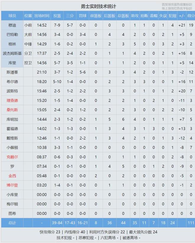 霍福德跟球队无缝衔接,这才是勇士最开心的事情。最后看看数据,说说你的感受: