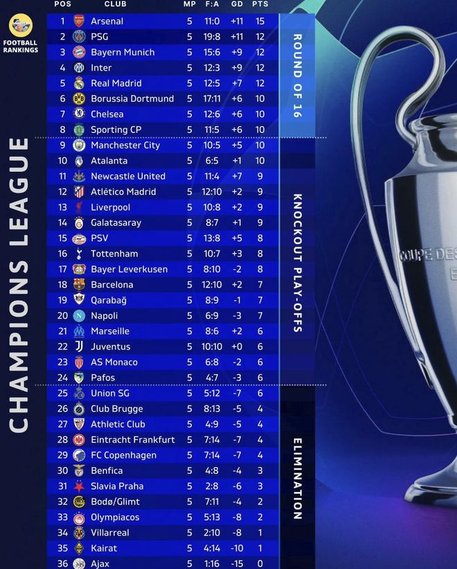 3-1!欧冠榜首易主:拜仁跌至第3!大巴黎旧将5场9球,领跑射手榜